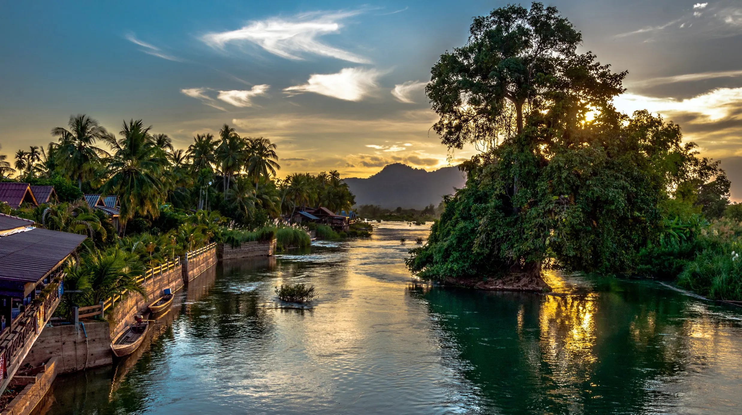 Sur l’île paisible de Done Khone, au cœur des 4000 îles du Mékong, vous dormez dans un hôtel de charme en bord de rivière, entouré de nature et de silence. À vélo, vous explorez les cascades, les rizières, et les vestiges coloniaux. Ici, le temps ralentit — une parenthèse de sérénité inoubliable.