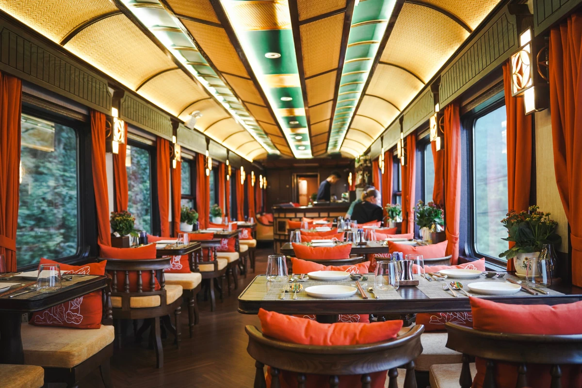 Le SJourney est le premier véritable train-hôtel de luxe du Vietnam. Il offre une manière élégante et immersive de découvrir le pays, sans changer d’hébergement et sans logistique à gérer. Le style « Indochine chic » mêle héritage colonial et confort contemporain. Les cabines, les espaces lounges et la voiture-restaurant créent une atmosphère raffinée, avec un nombre volontairement limité de passagers pour préserver l’intimité.